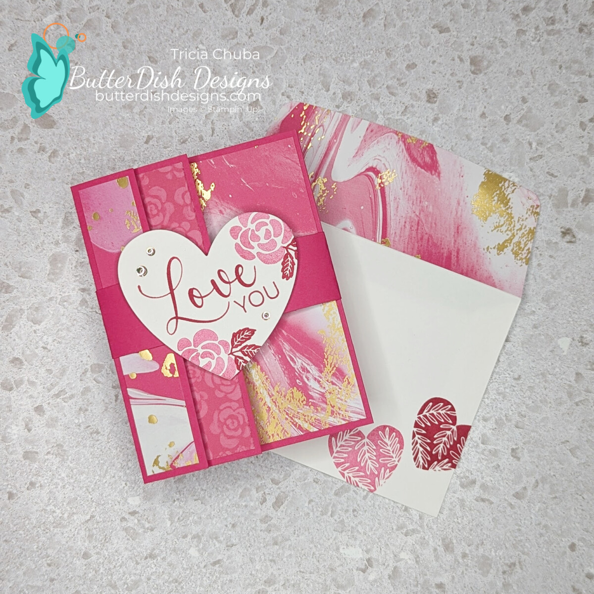 Do you like fun fold cards? How about easy fun fold cards? If you said yes, here’s an easy fun fold design for you. It showcases the Marbled Elegance Designer Series paper beautifully and comes together quickly! Sharing some love with this bright and beautiful card.